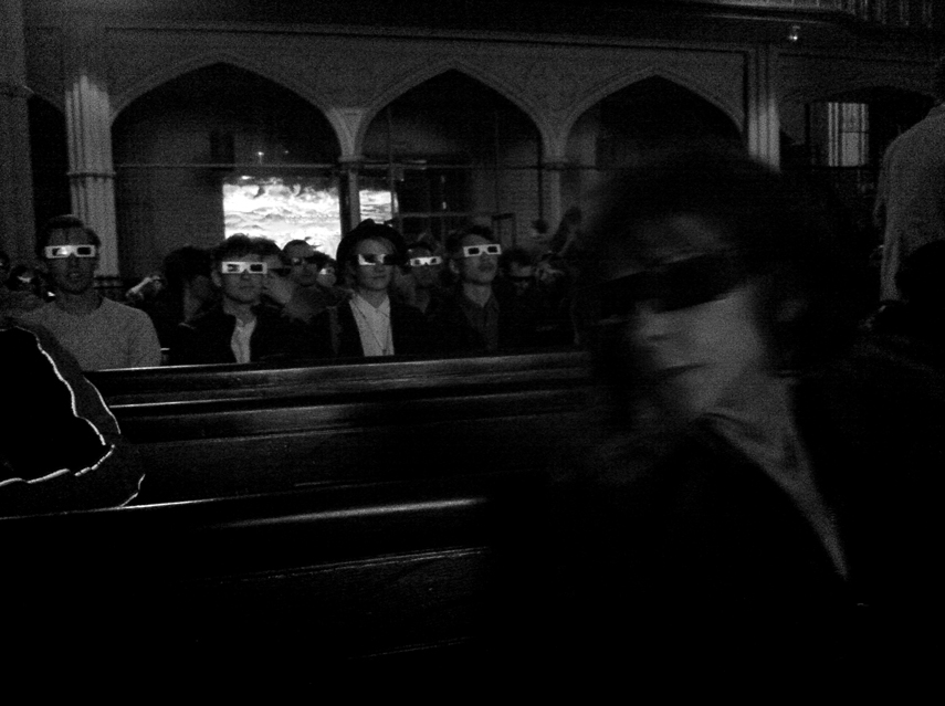 inspiration for several other pieces. The groundbreaking video installation creates an engrossing experience that echo's the church's stained glass window imagery.